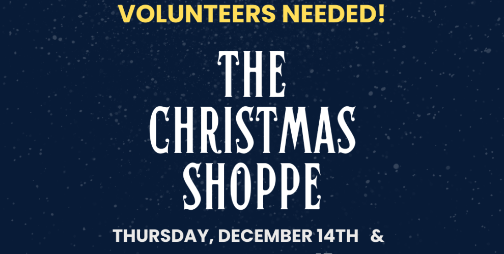 We are in need of volunteers for The Christmas Shoppe on Thursday, December 14th and Friday, December 15th. The PTF is excited to have our annual Christmas Shoppe open for students to shop for their families and loved ones. If you are available to help,